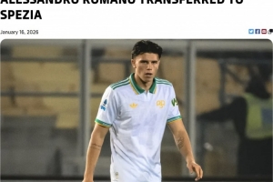 当地时间本周五,罗马俱乐部在官网发布公告称:“罗马俱乐部宣布,亚利桑德罗·罗马诺被租借至斯佩齐亚。这名19岁的瑞士中场在2026年1月6日罗马对莱切的意甲联赛中上演了罗马一线队首秀。祝你好运,亚利桑德罗!”