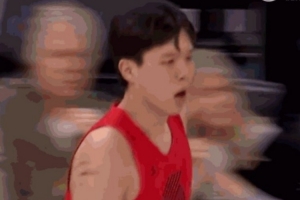GIF-配合失误后杨瀚森拍拍胸口表示自己的问题