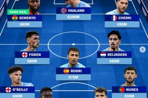 体育资讯1月20日讯 曼城已经官宣签下格伊,《转会市场》预测了曼城主力阵容,新援塞梅尼奥和格伊在列。