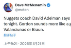 掘金主教练阿德尔曼:穆雷和小哈达威今天都可以打,戈登将会在赛前决定,约基奇、瓦兰和布劳恩缺阵。