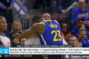 体育资讯1月23日讯 在此前对阵尼克斯的赛后,追梦与迈克·布朗拥抱致意,据传这引起了尼克斯内部的不满。
