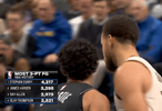 比赛的第二节,转播画面给出一组数据,内容为NBA历史三分命中数榜单,详情如下: