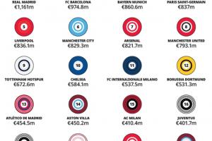 尽管转播收入可能已经被商业收入超越,但39.5亿镑总额仍是足球界的最大的收入来源之一。在这方面,皇马依然领先(2.81亿镑),紧随其后的是曼城(2.78亿镑)、阿森纳(2.69亿镑)和利物浦(2.69亿镑)。去年是欧冠新转播合同的丰收季,巴黎通过赢得夺得队史首座欧冠获得了创纪录的奖金,但由于法国国内转播收入较低,这方面总收入为2.46亿镑。