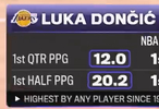 东契奇本赛季首节场均12分、上半场场均20.2分,两项数据皆为97年至今最高。