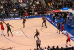 比赛的第三节,杜兰特迎着杜伦干拔再中,投进第5记三分已砍下24分。