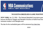 下一篇: Shams:原定4:30进行的灰熊主场迎战掘金,因天气原因推迟