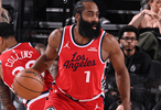 第一节比赛,首节战罢快船38-14大比分领先篮网,哈登轻松取得14分。