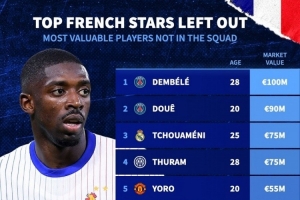 无缘本期法国队球员身价排名: