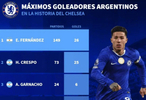 据统计,恩佐为切尔西出战149场比赛,打进26球,他也超越克雷斯波,成为队史进球最多阿根廷球员。