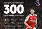 27岁的赖斯昨晚迎来英超第300次出场,成为英超历史上第5年轻达成这一成就的球员 👏#利兹联0比4阿森纳#