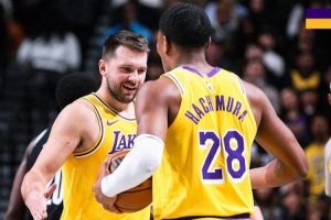 湖人官方晒本场赢球海报:东契奇和八村塁击掌登上封面