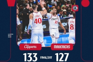 体育资讯11月15日讯 NBA西部NBA杯B组,快船双加时133-127独行侠。