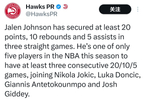 杰伦约翰逊连续三场20+10+5! 赶紧安排个全明星