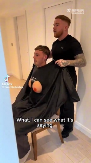 帕尔默的理发师想捉弄他,给他披了一件带假胸的理发袍,结果帕尔默对这对“胸”十分满意🤣