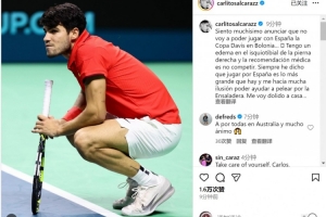 体育资讯11月18日讯 阿尔卡拉斯更新社媒动态,谈到了自己因伤退出戴维斯杯决赛阶段比赛的话题。