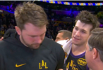 直播吧11月19日讯 NBA常规赛,湖人140比125击败爵士。赛后东契奇接受了采访。