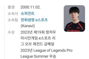 体育资讯11月20日讯 有多方流言显示Kanavi即将加盟HLE担任首发打野,韩国Naver百科的Kanavi页面之中,已经把Kanavi生涯效力战队中添加了HLE俱乐部。