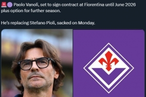 罗马诺表示:“瓦诺利即将与佛罗伦萨签约,合同期限至2026年,含延长一年的条款。他将取代周一被解雇的皮奥利,成为紫百合新帅。”