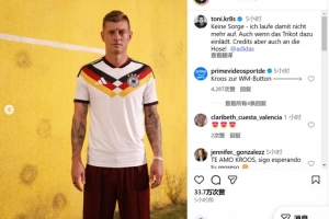 在社交媒体上,克罗斯晒出了自己身披德国2026年世界杯球衣照片,并写道:不必担心,我再也不会穿着它奔跑了,尽管这件球衣确实很诱人。顺便说一句,这件球裤也不错。