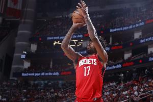 目前火箭全队三分命中率42.7%为联盟第一,全队共6人三分命中率达到37%: