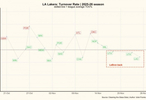 备注:虚线为联盟平均线,绿色为赢球比赛失误率,红色为输球比赛失误率