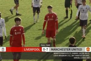 体育资讯11月29日讯 在刚刚结束的一场英超U18联赛中,曼联U18以7-0大胜利物浦U18。