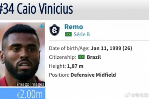 体育资讯12月3日讯 据博主“粤地足球人”社媒透露,效力于巴乙瑞模贝雷的26岁中场球员卡奥·维尼修斯接近加盟某支西南地区的中超球队,该博主表示球员已抵达该球队所在的地级市。