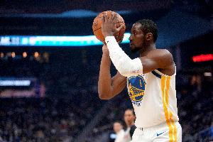 GIF-勇士乱战中抢下进攻篮板 库明加中路空切扣篮打停76人