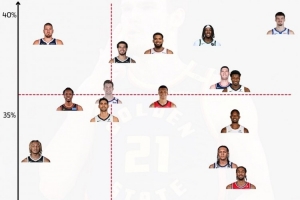 纵坐标未三分命中率,横坐标为篮下防守率。