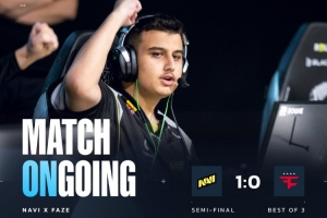 来到长枪回合,NAVI三人看B,FaZe四人来B,包点刚枪iM近点双杀让makazze与wonderful收割,NAVI拿到第11分。暂停回来,makazze联手小李子与IM三人看B固若金汤团灭FaZe拿到赛点,最终wonderful大狙三杀开场,FaZe瞬间被团灭,NAVI以13-5拿下图一。