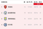 英超第16轮切尔西利物浦阿森纳取胜,积分榜现新变化