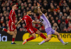 12月13日,利物浦队球员萨拉赫(中)在比赛中射门。新华社发