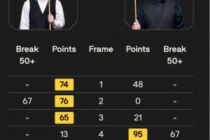 开场后袁思俊连胜三局并在第二局中打出单杆67分,第四局本·沃拉斯顿打出单杆67分扳回一城,第五局袁思俊打出单杆63分锁定胜局。
