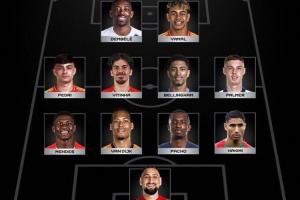 后卫:阿什拉夫(巴黎)、帕乔(巴黎)、范戴克(利物浦)、门德斯(巴黎)
