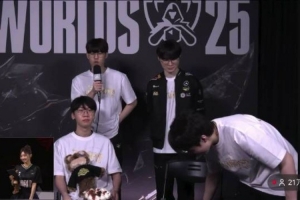 体育资讯11月9日讯 采访只准备了两把椅子!Keria中途离开,Faker终于能坐下了。