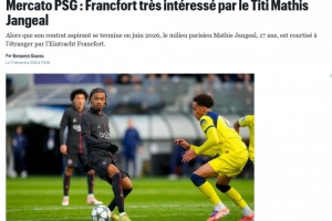 法媒:法兰克福、多家英超俱乐部有意巴黎17岁小将扬吉尔
