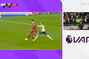 主裁判判罚声明:“经回看确认,托特纳姆热刺队7号球员(西蒙斯)抬脚亮鞋钉,踢中利物浦队4号球员小腿上部,此行为构成严重犯规。我的最终判罚为红牌。”