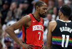 火箭前锋凯文-杜兰特和前队友布鲁斯-布朗在这场激烈的比赛中早些时候发生了一些激烈争执: