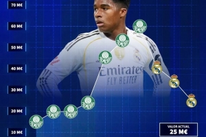 德转晒恩德里克身价走势:加盟皇马三连跌,外租里昂能否回升?