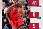 值得留意的是,这是伦纳德生涯第9次单场得分40+,距离伦纳德上次单场得分40+已时隔746天。