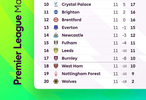 【英超积分榜】 #英超# 2025-26赛季英超联赛第11轮积分榜。