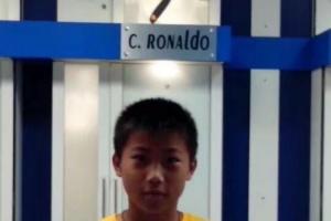 谢文能时隔10多年再次前往伯纳乌参观,晒出儿时与更衣室C罗球衣合影的照片。