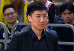 四川男篮主帅韩硕出席新闻发布会点评比赛。