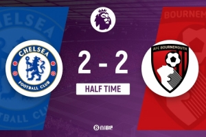 体育资讯12月31日讯 北京时间12月31日凌晨3时30分,英超第19轮,切尔西坐镇斯坦福桥球场迎战伯恩茅斯。上半场,布鲁克斯首开纪录,随后埃斯特旺造点,帕尔默点射破门,恩佐反超,克鲁伊维特扳平。半场战罢,切尔西暂2-2战平伯恩茅斯。