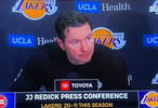 雷迪克被问到为啥湖人总是输十多分:“我认为今晚球队在比赛意图和努力程度上整体是到位的。我们在挡拆战术的一些技术细节上尝试调整,但未能完全执行到位。失误和快攻得分确实致命。当对手投篮命中率达到63%,且大部分得分来自篮下或油漆区时,这种打击是极具摧毁性的。”