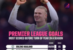 #曼城[超话]# 2025年英超战罢,数据网站OPTA也盘点了英超历史在新年之前射手榜,其中本赛季哈兰德19球并列次席,纪录也由自己保持。