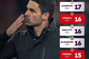 体育资讯1月1日讯 英超官方统计,阿森纳在2025年英超利用角球机会打进17粒进球,此数据在单一自然年仅次于曼联在2012年的18球。具体榜单如下: