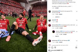 努涅斯发布社媒告别2025,麦卡利斯特在下面留言:我从未想过会说出这句话,但我真的很想你,兄弟。努涅斯回复:我也想你,兄弟 😂 新年快乐。