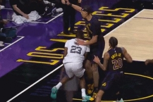 GIF-海斯被撞到关键部位