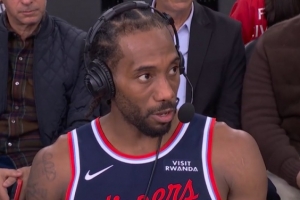 体育资讯1月6日讯 NBA常规赛,快船主场103-102险胜勇士,小卡在场边接受了媒体采访。